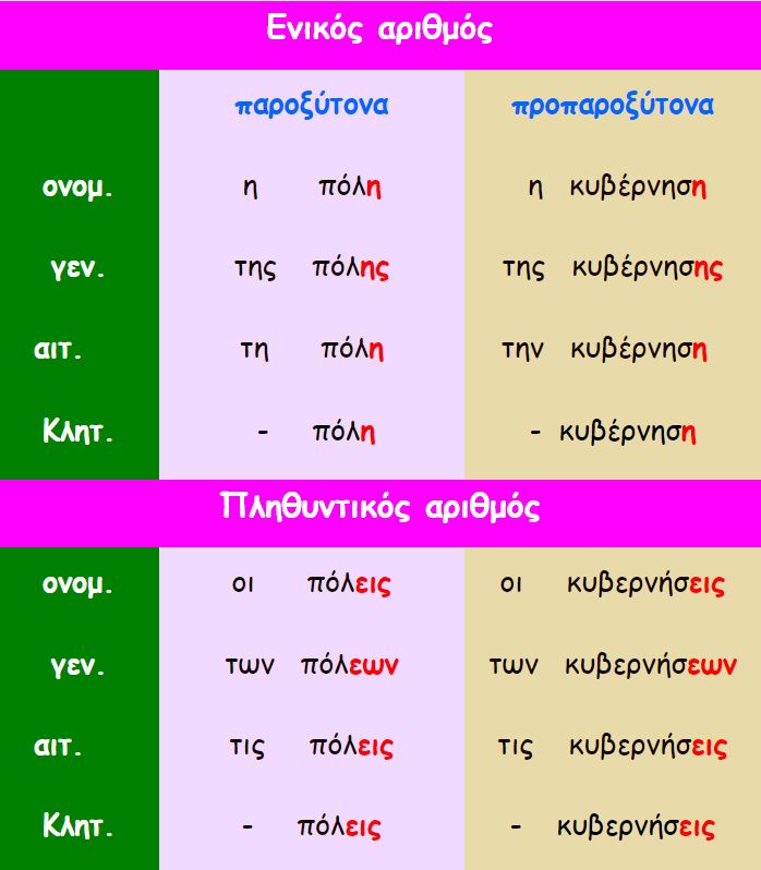 η δύναμη, η απόφαση, η αφαίρεση, η σύνταξη, η άποψη, η Ακρόπολη κ.ά.